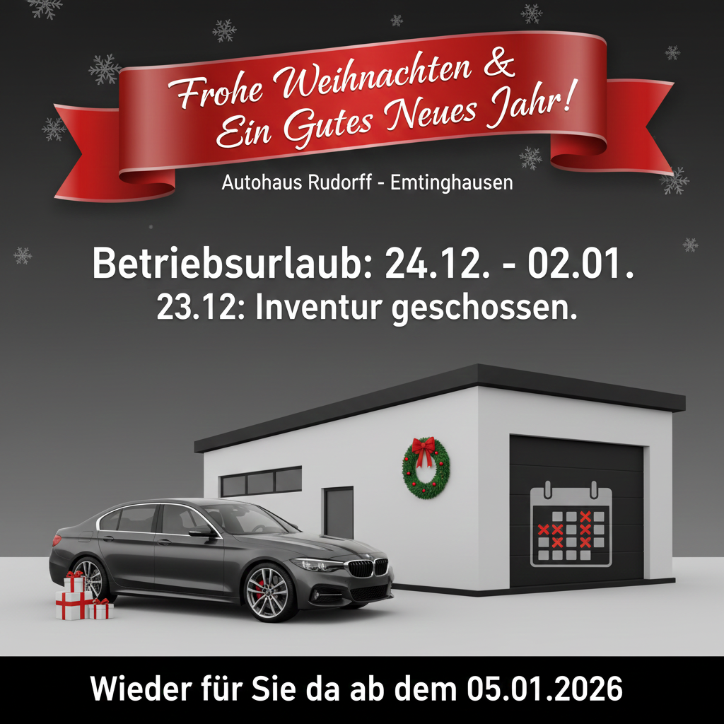 23. Dezember: Wegen unserer jährlichen Inventur bleibt das Autohaus geschlossen.